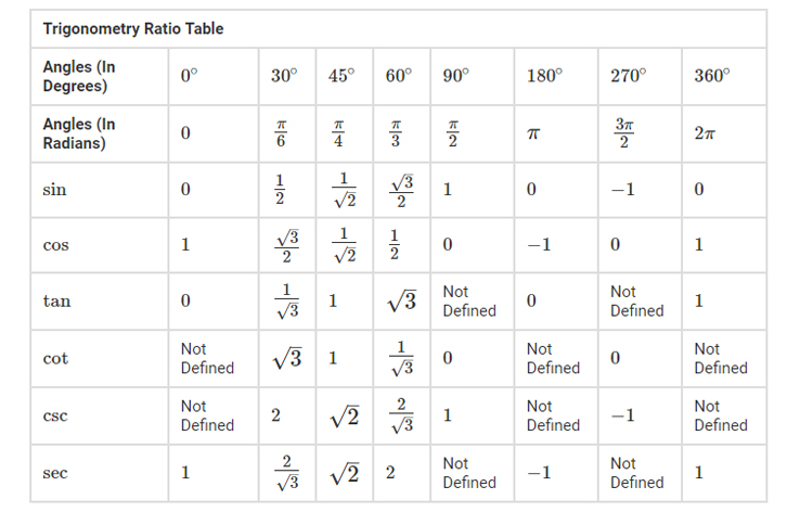 Trig Function Charts Values at Maria Baum blog